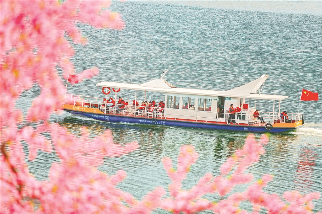 視線移至同樣位于江畔的瀛湖景區(qū),這里的年味因“漢水街”的沉浸式文旅體驗(yàn)而火爆出圈。位于玉興島與金螺島之間的這條街區(qū),突破傳統(tǒng)舞臺(tái)限制,將《云岫仙音》《鳳首箜篌》等十余場(chǎng)演藝植入街巷、廣場(chǎng)與露臺(tái)。游客步入其中,便是“入街即入戲,移步即換景”,在湖光山色間與不同故事劇情不期而遇,收獲了前所未有的觀演樂趣。景區(qū)內(nèi),玉興島的萌寵樂園成為親子家庭的歡樂源泉,孩子們與環(huán)尾狐猴、小浣熊、梅花鹿親密互動(dòng),歡聲笑語不斷;水上運(yùn)動(dòng)中心打破季節(jié)限制,摩托艇、拖傘等項(xiàng)目讓游客在春節(jié)里也能體驗(yàn)戲水的激情。瀛湖景區(qū)全員在崗,暖心驛站里的熱姜茶、穿梭于車流中的“暖心護(hù)航員”,無一不讓游客在領(lǐng)略美景的同時(shí),感受到家的溫暖。