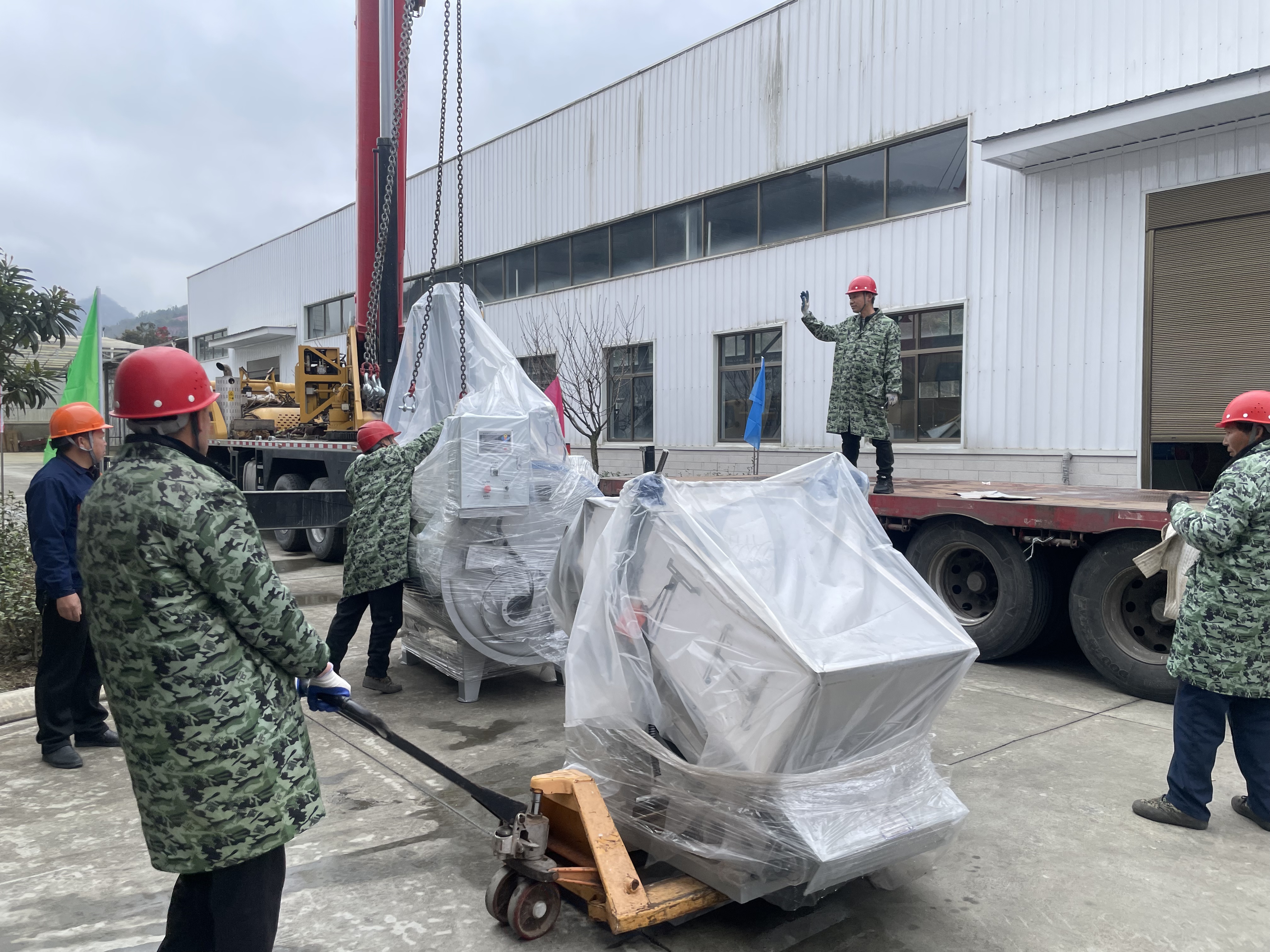 走進平利硒地抹茶茶業(yè)有限公司廠區(qū),一派繁忙景象映入眼簾:滿載設備的大型貨車緩緩駛入,吊車揮臂起吊,工人們協(xié)同搬運,一件件精密設備被精準定位。從入場指引到吊裝作業(yè),再到設備擺放,各環(huán)節(jié)環(huán)環(huán)相扣、井然有序。