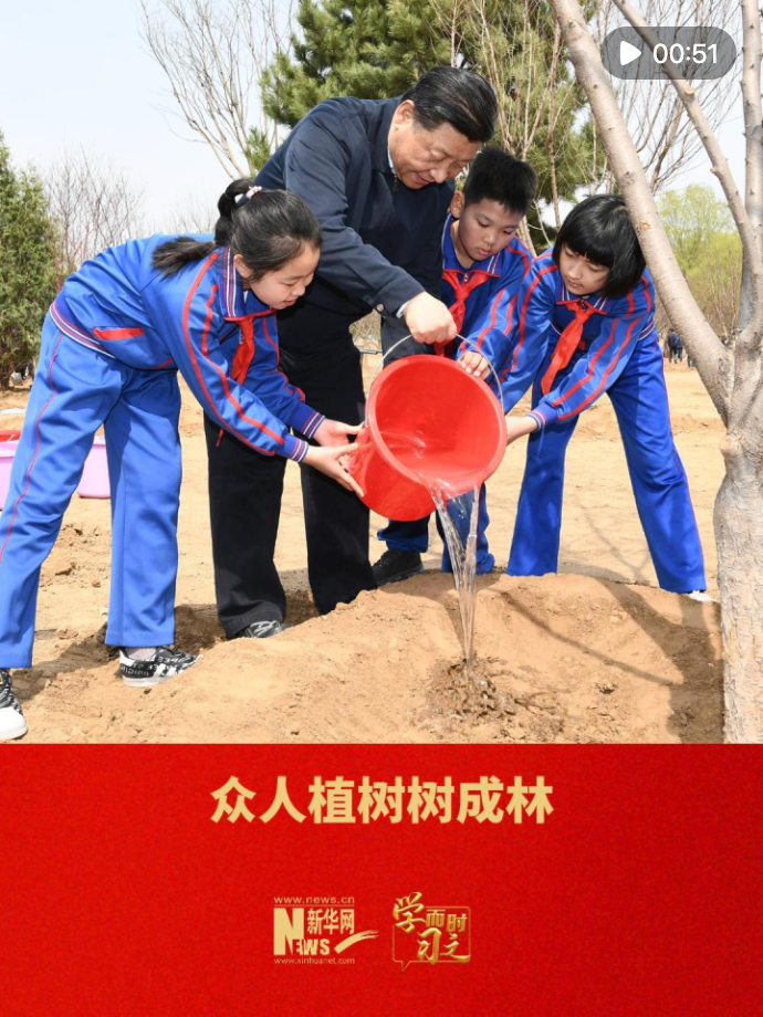 黨的十八大以來,習近平總書記每年都會身體力行,參加首都義務植樹活動。他強調(diào),讓我們從自己、從現(xiàn)在做起,把接力棒一棒一棒傳下去。