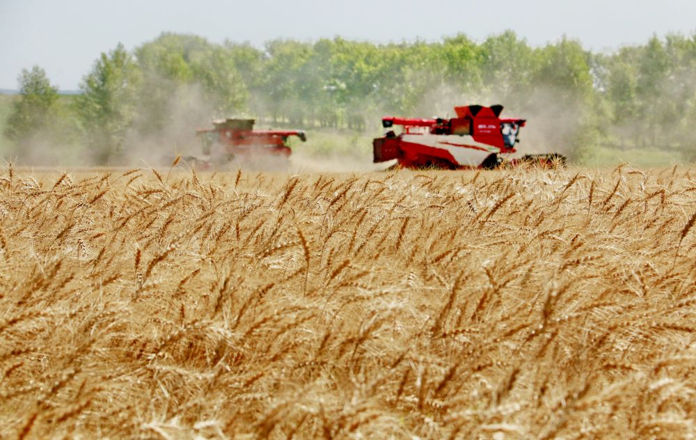 2025年8月5日,位于黑龍江省五大連池市的大慶油田農(nóng)場調(diào)動(dòng)多臺聯(lián)合收割機(jī)搶收小麥。新華社發(fā)(陸文祥 攝)