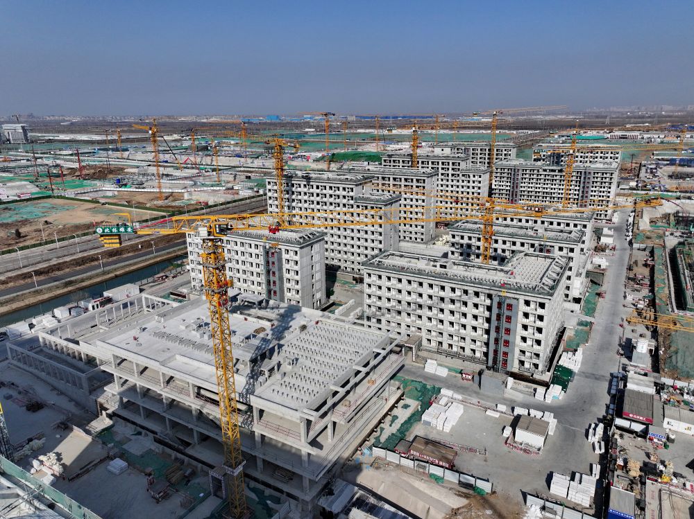 2021年是雄安新區(qū)大規(guī)模開發(fā)建設向縱深發(fā)展的關鍵一年。容東片區(qū)是雄安新區(qū)開發(fā)建設的先行區(qū)域,擔負著承接北京非首都功能疏解和安置回遷群眾的重要任務。這是2021年4月8日拍攝的雄安新區(qū)容東片區(qū)安置房項目建設現(xiàn)場(無人機照片)。2021年10月,容東第一批安置房開始交付。