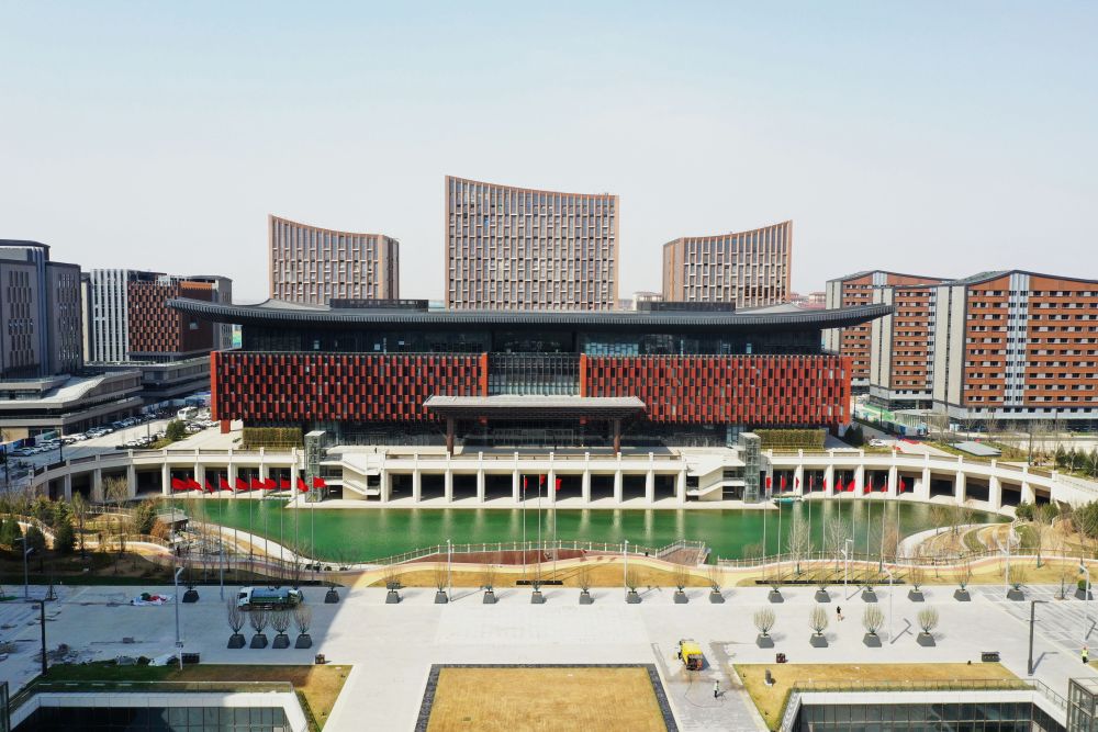 雄安商務服務中心是新區(qū)首個標志性城市建筑群,建筑風格以東方美學立體展現(xiàn)雄安特色風貌,功能包括酒店、專家公寓、商業(yè)等。2022年底,該中心投入使用。通過綠色建筑技術的集成與創(chuàng)新,這里實現(xiàn)了綠建三星標準全覆蓋,項目預計每年可節(jié)約用電1100萬度。這是2022年3月28日拍攝的雄安商務服務中心。